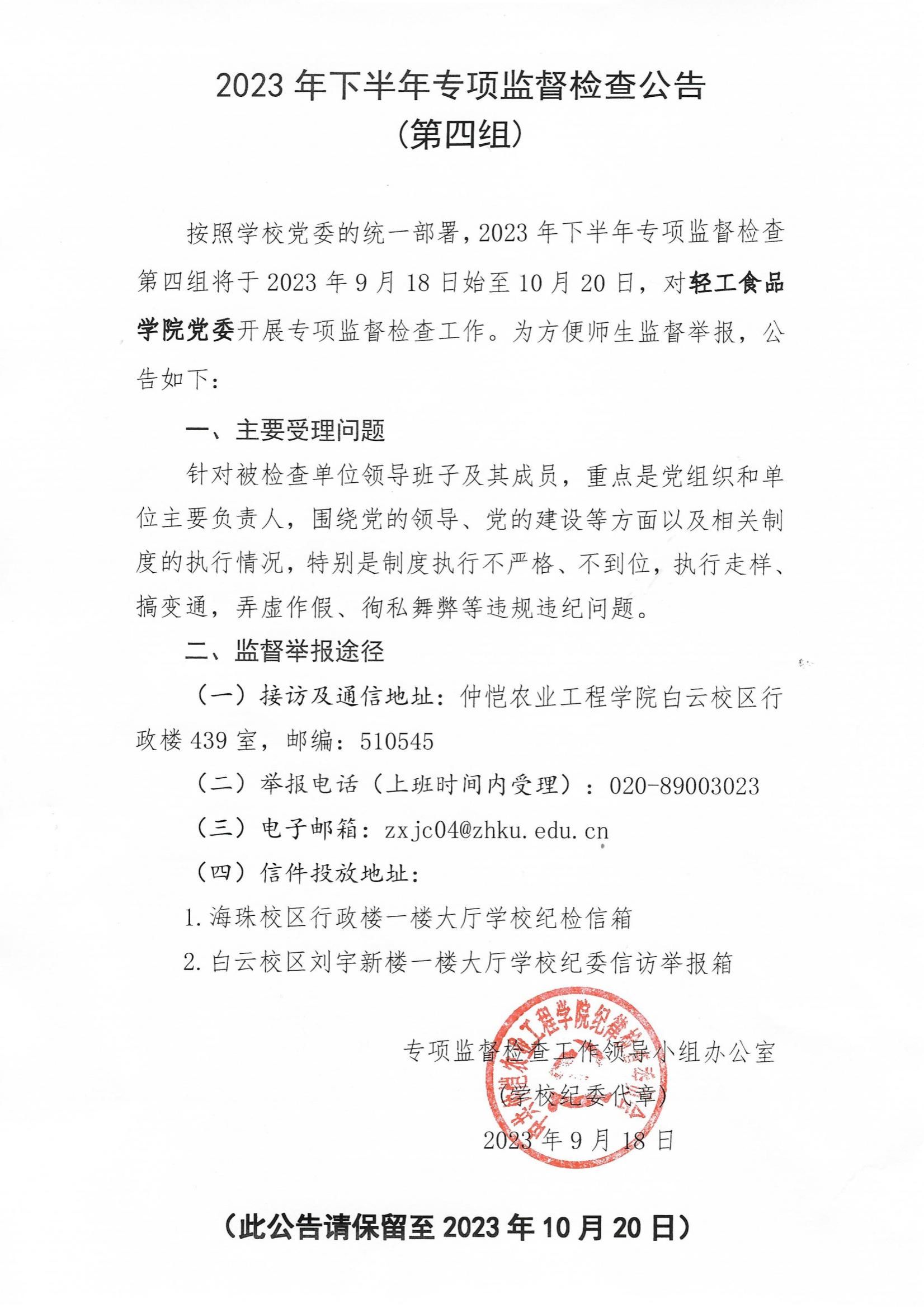 • 2023年下半年专项监督检查公告(第四组)