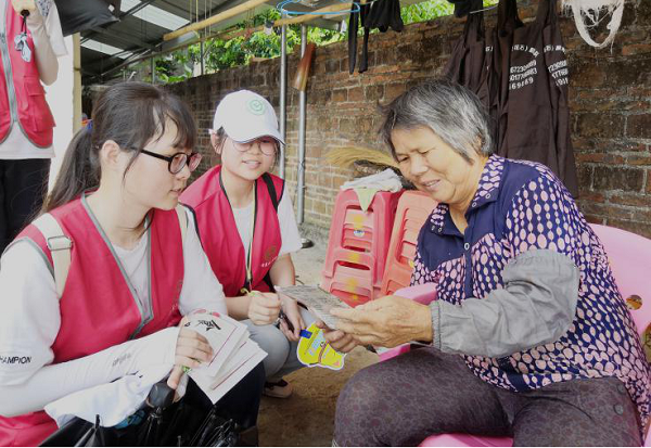 宣传组深入花石村的大街小巷向村民们派发有关食品贮藏、保护视力、预防诈骗、消防安全的传单,并向他们普及相关知识。还开展了以“保护生物多样性”为主题的摆摊活动。希望能通过此行三下乡的宣传来提高村民们的安全防范意识以及保护生物多样性的意识。