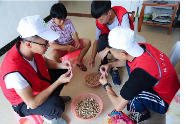 关爱组在村委会的帮助下了解到了当地村民的情况后,对当地孤寡老人进行走访,与老人们一起唠家常、干农活、带小孩,为他们送去温暖的陪伴。在走访中,组员们对社会基层的劳动人民有了更深入的了解,同时也认识到一些老百姓生活的艰苦,这有利于增强大家珍惜当下幸福生活的意识。