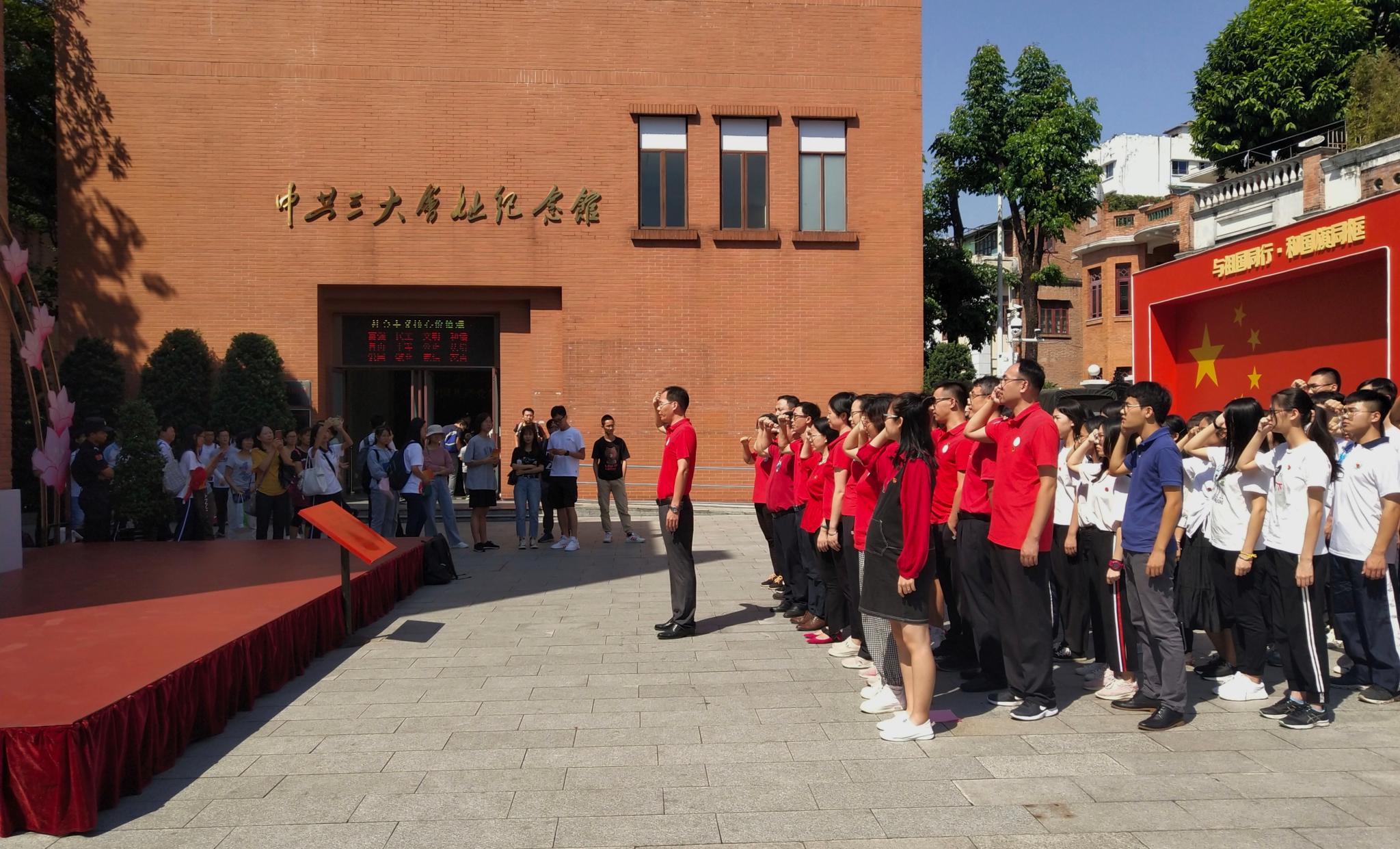在中共三大会址纪念馆广场,师生党员举行了重温入党誓词仪式。随后,大家参观了纪念馆《中国共产党第三次全国代表大会历史陈列》展览。该展览运用图文、视频、实物、模型等各种手段, 从“中共三大召开的历史背景”、“中共三大的召开”、“国共合作的实现”、“中共三大的历史作用深远影响”四个部分对中共三大的历史作了全面的介绍和展示。