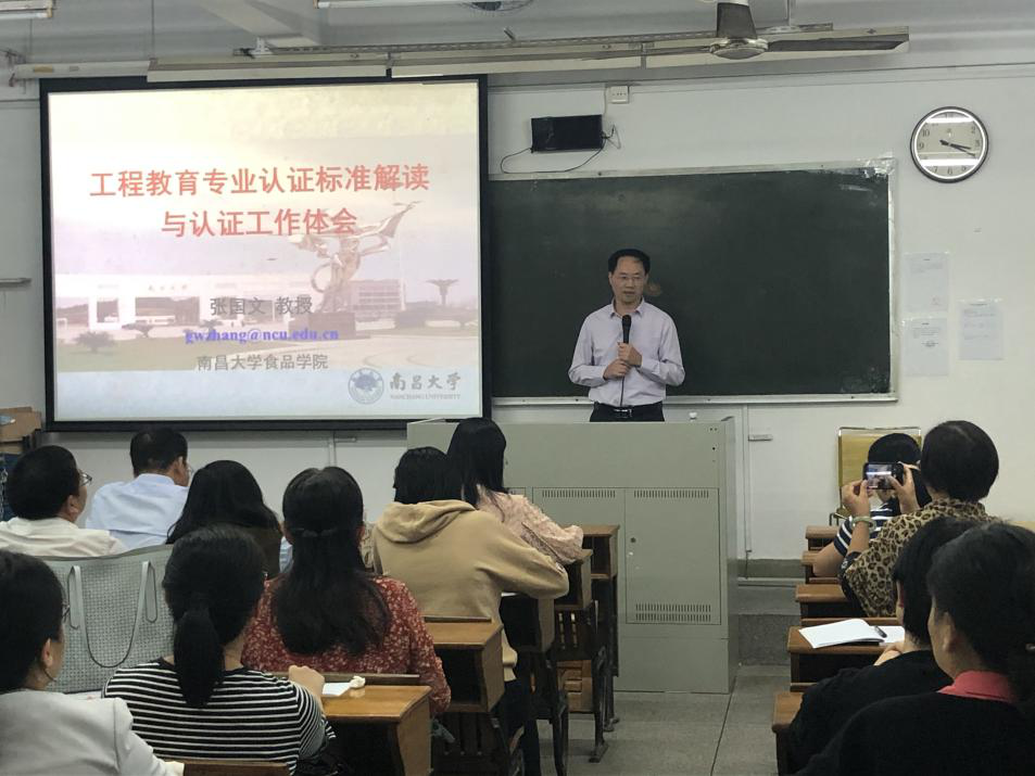 10月31日下午,南昌大学食品公司副经理张国文教授应邀院作题为“工程教育专业论证标准解读与认证工作体会”的辅导讲座教务处处长石玉强、公司领导和全体教师参加了本次讲座讲座由王琴经理主持。