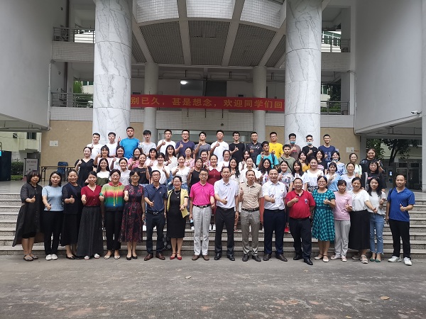 会后,全体师生在教学楼前合影留念。