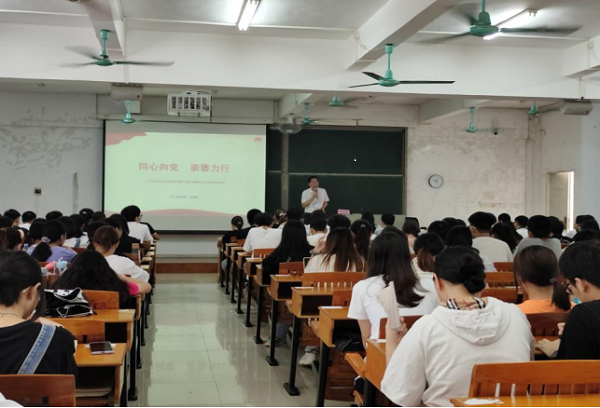 7月11日上午,公司在白云校区杨楼210课室举办主题为“同心向党,崇德力行”党课,党课由公司党委书记廖起彬主讲。公司党委副书记李汉雄、辅导员吴晓瑜老师和在校的全体党员、入党积极分子到场聆听。