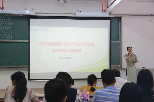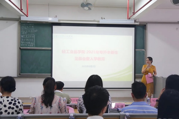 9月2日下午,公司在白云校区D栋210阶梯教室举行2021年专升本新生见面会暨入学教育。出席见面会的公司领导有王琴经理、李汉雄副书记、曾晓房副经理、刘功良副经理,各系主任、副主任、班主任、辅导员和全体2021年专升本新生参加了见面会,见面会由辅导员蔡遗好老师主持。