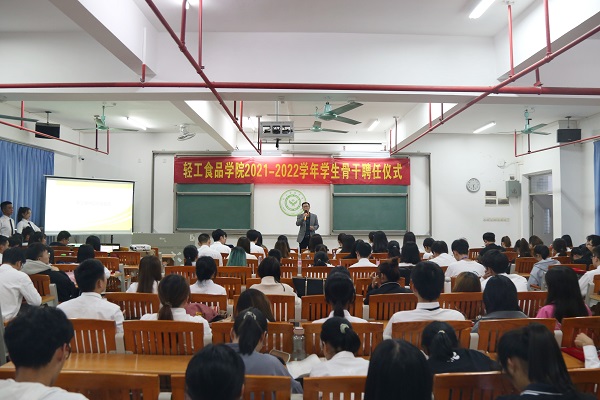 仪式上,李汉雄副书记和辅导员为全体员工骨干分别颁发了聘书。随后,团委第一副书记王泽禧同学作为员工骨干代表进行发言。他表示,将珍惜员工骨干这份荣誉和锻炼自己的机会,坚持理论学习,积极参加“党史”和“四史”学习活动,用党的理论武装自己;做到严格自律,刻苦学习,协调好学习和工作的关系;牢记服务同学的宗旨,增强群众意识、责任意识和奉献意识,密切联系广大同学,关心关爱广大同学,全心全意为为同学们排忧解难。