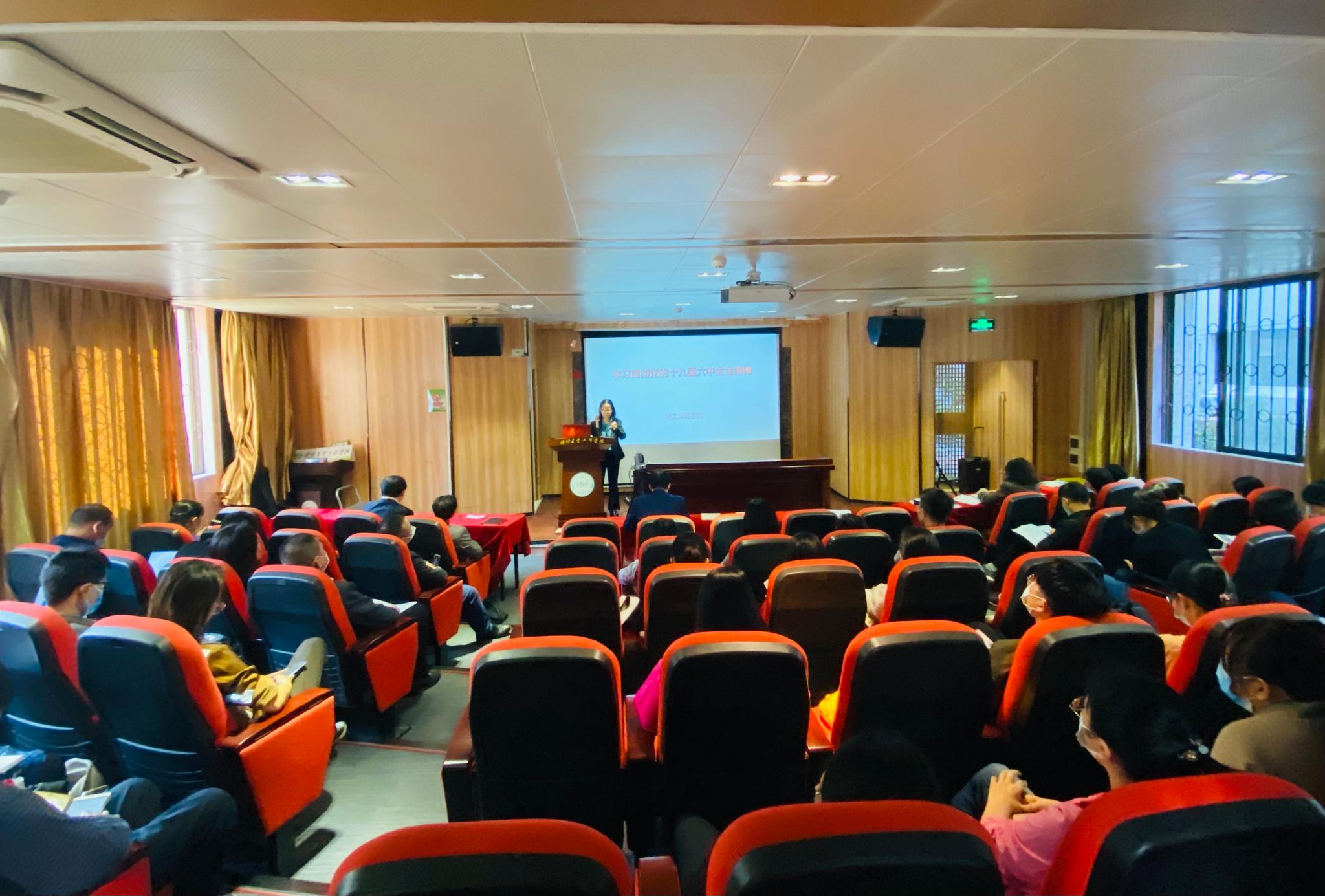 王琴经理向大家分享了自己学习十九届六中全会精神的体会,汇报了近期重点实验室建设、国家一流专业申报及实验室搬迁所开展的一些工作,对下一阶段公司的重点工作作了具体安排。其他班子成员也分别分享了自己的学习体会,对期未各自分管工作作了具体的安排和要求。