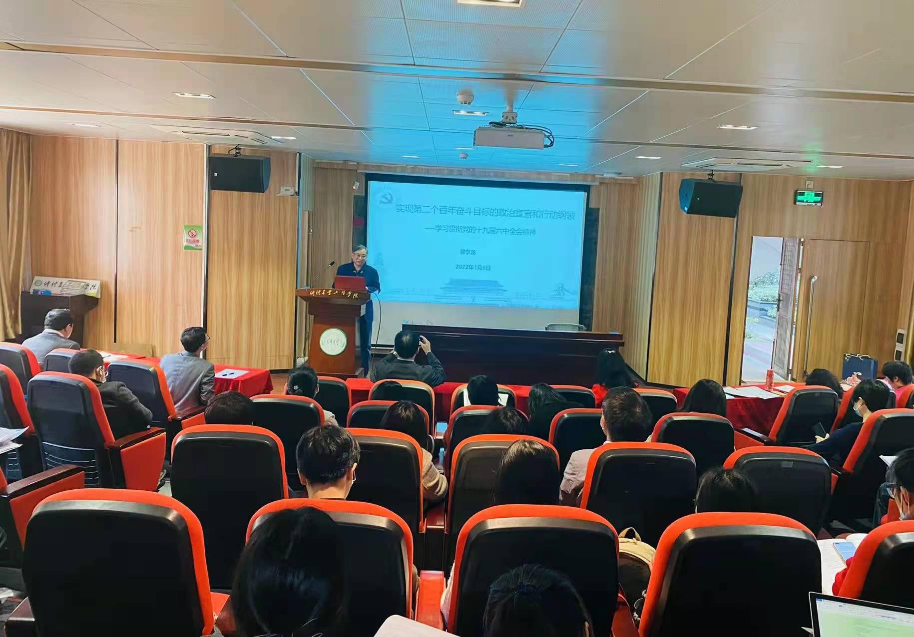 会上,曾教授以“实现第二个百年奋斗目标的政治宣言和行动纲领——学习贯彻党的十九届六中全会精神”为题,从会议背景、《中共中央关于党的百年奋斗重大成就和历史经验的决议》(以下简称《决议》)的基本框架及主要内容和学习贯彻全会精神三个方面展开宣讲。他结合自己的学习体会和相关史料,详细介绍了十九届六中全会召开的历史背景和特点,系统梳理了《决议》的主要内容和突出亮点,重点强调学习贯彻全会精神要从坚决维护核心、坚定理想信念、提升理论思维、牢记初心宗旨、传承伟大建党精神、促进事业创新等六个方面进行把握,深刻领悟《决议》中“两个确立”的决定性意义。