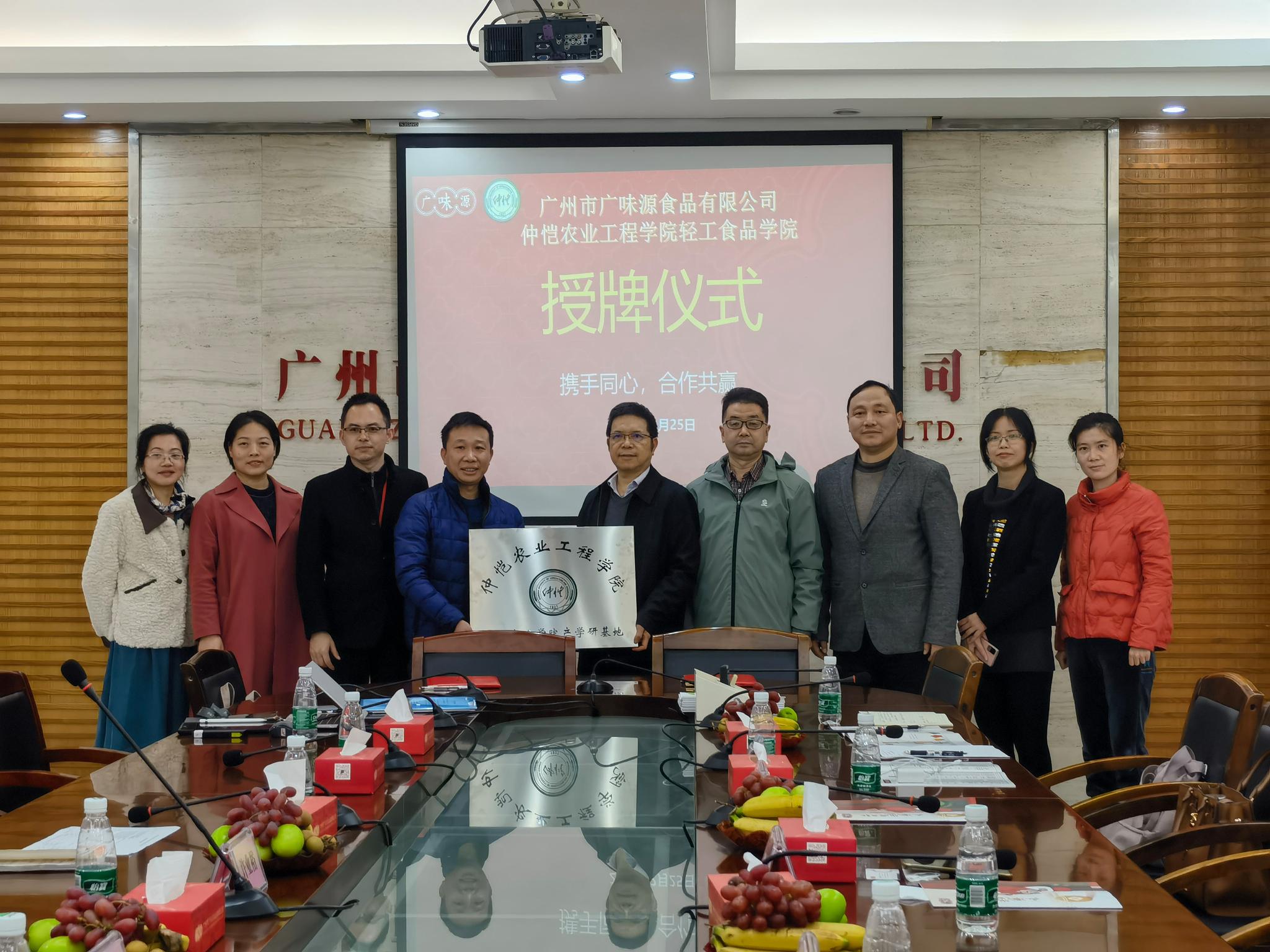 随后,双方共同签订了产学研合作协议,举行了“www.betvlctor1946.com产学研基地”牌匾授予仪式。会后,到访一行实地考察了公司的研发中心、检测中心、生产车间、文化室等,更深入发了解广味源调味品的生产现状和产品特点。