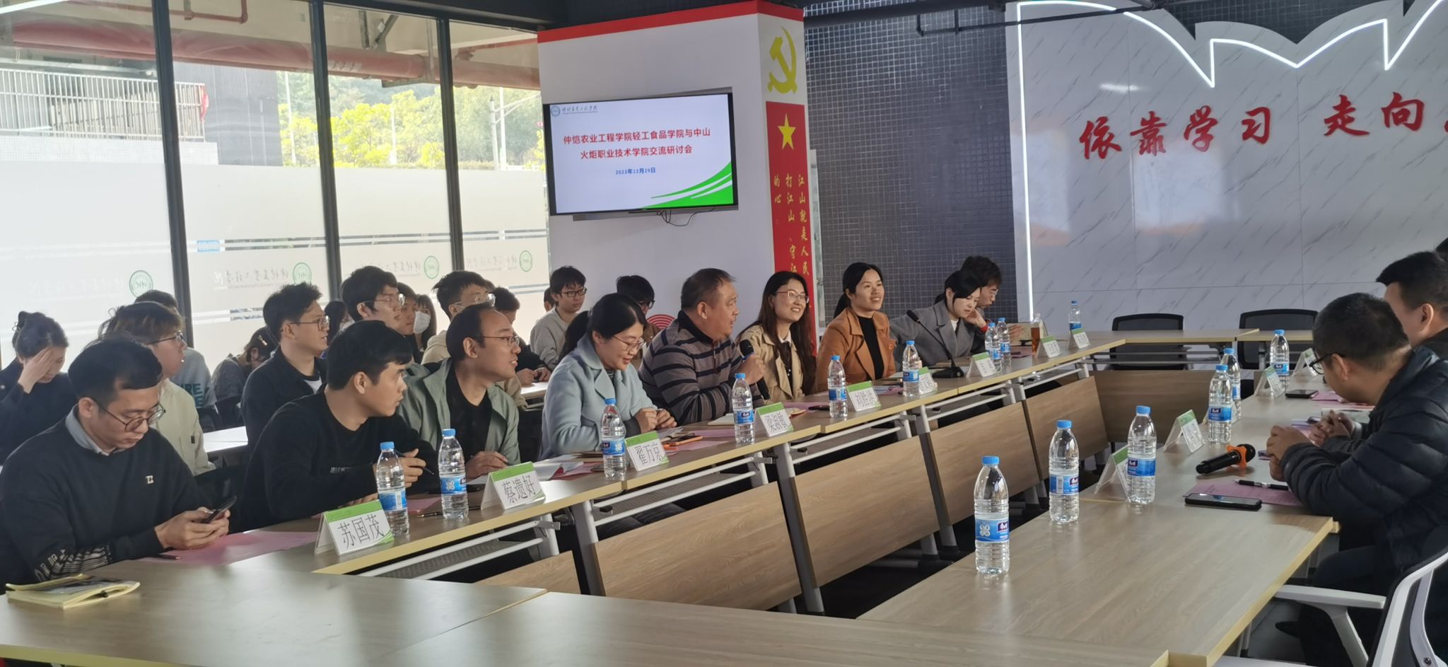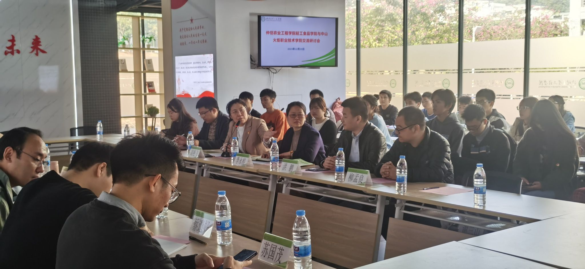 12月29日上午,中山火炬职业技术公司包装设计公司代书记、副经理(主持工作)高艳飞,校团委副书记李永桂一行率师生来院交流研讨。研讨会在公司白云校区23栋党建与思想政治工作室顺利召开,公司党委书记刘胜洪,校团委副书记唐文韬,公司党委副书记吉燕、包装工程专业师生代表参加交流研讨会。会议由吉燕主持。