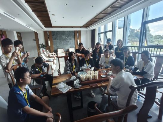 下午,韩山生态茶园负责人郭总向队员们详细介绍了茶园得天独厚的自然条件以及如何孕育出品质卓越的金萱茶。金萱茶,这一由台湾引进的优质茶树品种,在韩山的滋养下,不仅保留了其独特的品种香——一种清新而略带桂花或牛奶的香气,更在口感上展现出甘醇浓厚的特色,深受茶客喜爱。