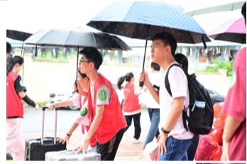 红马甲闪耀,志愿精神暖人心。尽管细雨绵绵,但一群身着鲜艳红马甲的志愿者成为了校园里最亮丽的风景线。他们如同秋日暖阳,穿梭于校园的每一个角落,用实际行动诠释了“奉献、友爱、互助、进步”的志愿精神。从指引路线到搬运行李,从答疑解惑到情感交流,每一个细微之处都饱含着对新生无微不至的关怀与帮助,让初入校园的新生感受到了家的温暖与归属感。