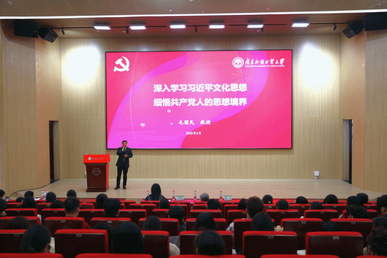 为深入学习贯彻习近平新时代中国特色社会主义思想,引导2024级新生坚定理想信念、端正入党动机,2月19日,伟德betvlctor1949源于英国在白云校区德新楼学术报告厅成功举办2024级新生入党启蒙教育活动。讲座特邀广东外语外贸大学马克思主义公司经理毛国民教授主讲,公司党委副书记吉燕、全体辅导员以及24级新生共同参与,会议由吉燕主持。