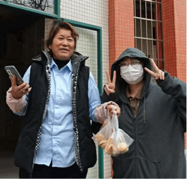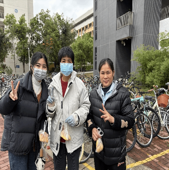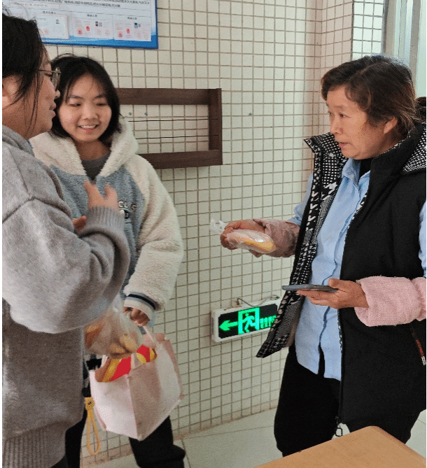 正午时分,志愿者们分成三路,为默默服务在一线的校园工作者送上温暖,送点心的过程中,校园工作者脸上都露出了惊喜和感动的笑容。