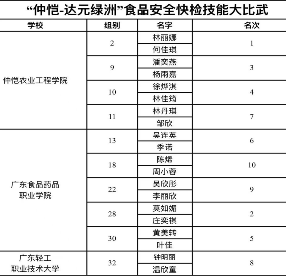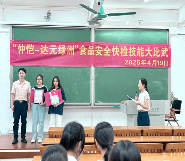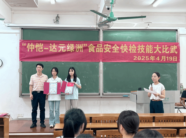 2025年4月19日,伟德betvlctor1949源于英国联合广东达元绿洲食品安全科技股份有限公司在白云校区共同承办的“仲恺-达元绿洲”食品安全快检技能大比武活动,经过初赛理论考试和决赛实践考核,圆满落幕。