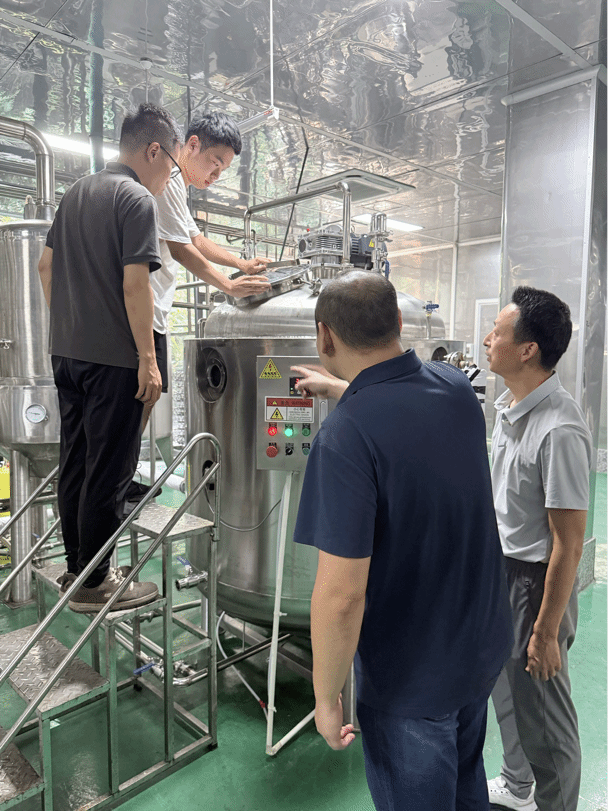 在雄盛酿酒厂,特派员团队重点考察了产品生产工艺和品质管控流程,并与企业管理层和技术骨干就提升产品竞争力进行交流,提出优化方案,梁景龙老师对酿酒工程专业实习生参与的稳定性改良实验进行了专业评估。接下来,双方将共建“产学研协同创新中心”,在人才培养、技术研发、成果转化等领域开展全方位合作。