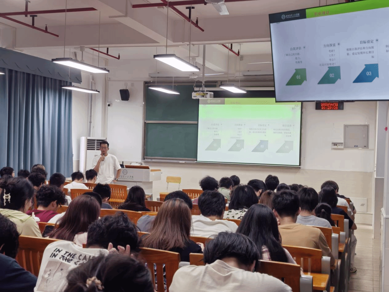 聚焦学业根本,规划多元发展:针对学业发展,苏国茂老师对同学们的日常学习规划、课堂效率提升及诚信应考提出了具体要求,明确指出诚信是学术底线,任何考试违规行为都将面临严肃处理。他鼓励同学们立足当下、着眼长远,结合自身兴趣与专业特点,积极思考并探索包括考研深造、高质量就业、自主创业等在内的多元化发展路径,为未来打下坚实基础。