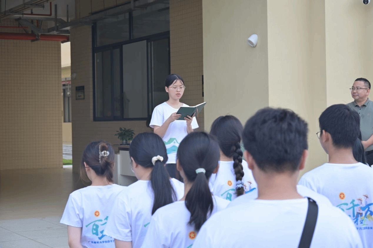 食品231黄思苏作为突击队成员代表发言,她回顾了 2024 年暑期深入梅州市丰顺县开展科普活动遇到的困难以及服务过程中的成长变化,分享团队从调研、实践到总结的全过程,正是这些宝贵的经历使她今年继续选择服务乡村,她号召全体队员,谦逊扎根基层、认真对待任务、团结面对挑战,切实交出“走得了心、落得了地”的青春答卷。