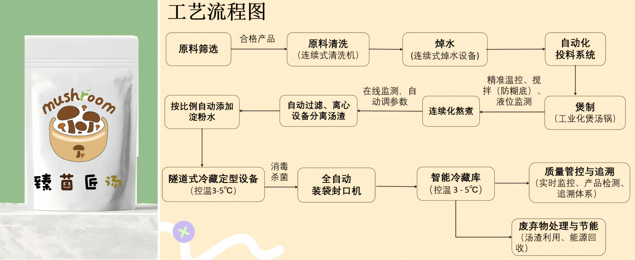 团队还设计了专属品牌包装提升辨识度,并绘制了标准化工艺流程图。着眼于产业化落地,团队提出聚焦复合风味体系开发、探索融合药食同源原料等功能性成分添加等升级路径,系统化推动产品向工业化生产迈进,助力当地食用菌产业全链条升级。