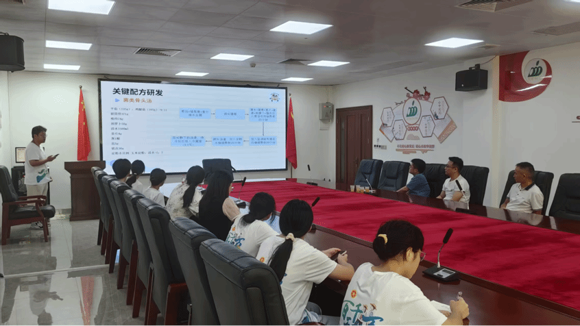 在菌类高汤品鉴会上,团队代表叶昊系统汇报了市场调研、研发成果及产业思考。现场展示的菌菇鸡汤、菌香骨头汤、纯菌菇汤三款预制菜品获得企业高管高度评价。双方围绕成本控制模型与风味创新方向展开深度研讨,企业项目技术部经理高仕提出的“成本优化”“融合地域特色风味”等建议,为产品后续迭代提供了重要方向。吉燕副书记充分肯定了团队在丰顺县汤坑镇的扎实工作,明确将建立常态化对接机制,通过专家驻点服务、共建员工实践基地等方式,实现高校智力资源与企业技术需求的精准匹配。