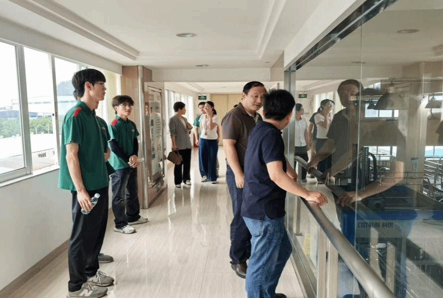 座谈会后,许业裕总经理陪同公司师生参观了公司先进的生产设备、检测仪器及新产品,并重点探望了正在实习的5名员工。许总强调,高端人才与核心技术是企业发展的关键。高苏娟老师叮嘱实习员工珍惜实践机会,严守操作规程,确保安全。
