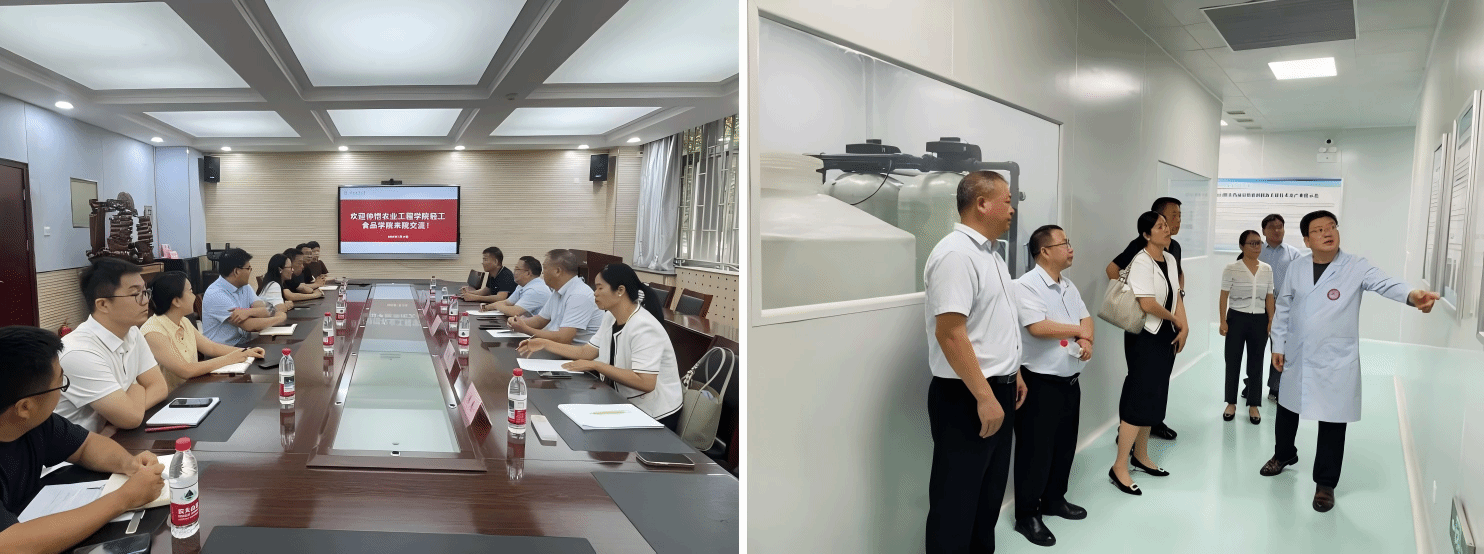 7月10日上午,团队前往陕西师范大学食品工程与营养科学公司调研。双方重点围绕功能食品研发、营养健康教育及课程思政建设展开深入交流。团队还实地参观了现代化食品加工实训中心,观摩了功能性食品开发、食品安全快速检测等实训教学基地,并就实践教学体系与理论课程的衔接问题进行了专项研讨。