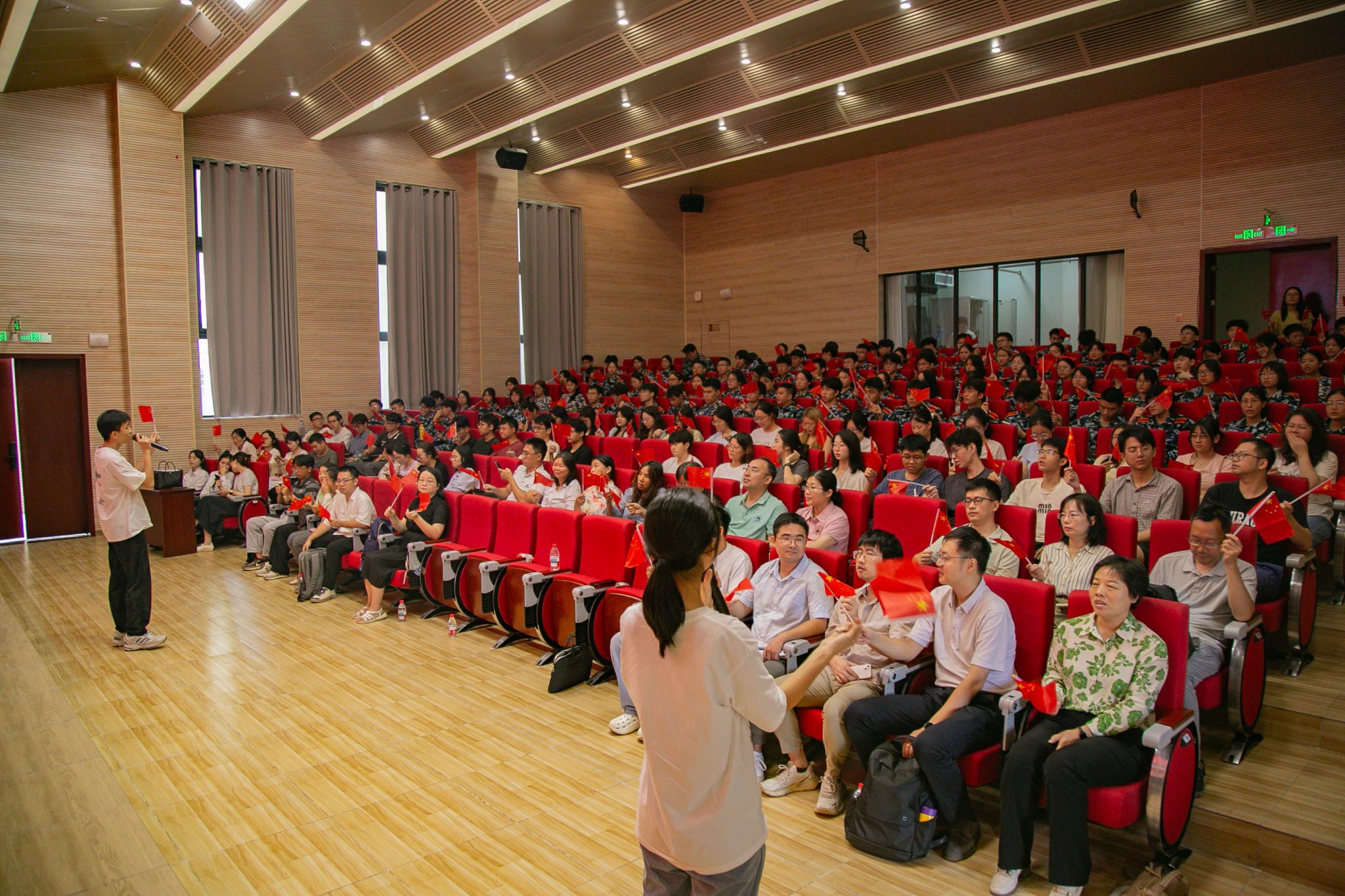 大会在生工241班蔡浩渝、质安241班罗心雅两位同学领唱《我和我的祖国》的歌声中圆满落幕,现场气氛热烈而庄重。