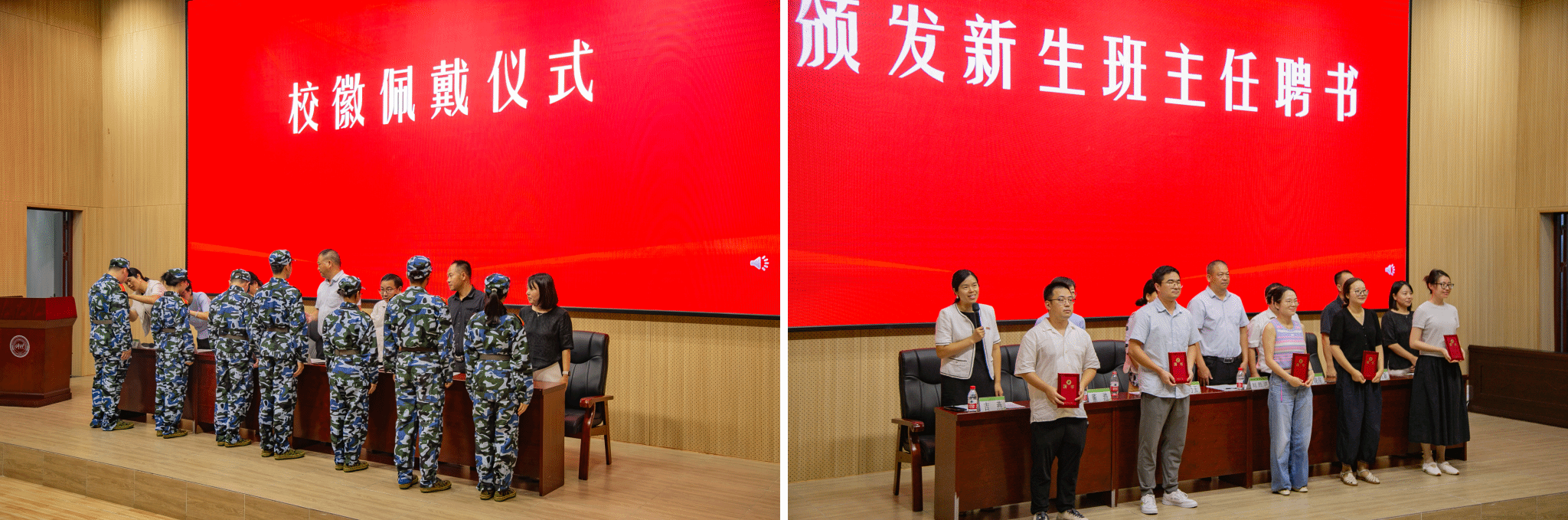 会上举行了庄重的校徽佩戴仪式,公司领导为新生代表佩戴校徽,象征他们正式成为仲恺食品人,肩负起使命与荣光。在新生班主任聘任环节,公司领导为2025级本科班主任颁发聘书,期望他们做好员工成长路上的引路人和良师益友。