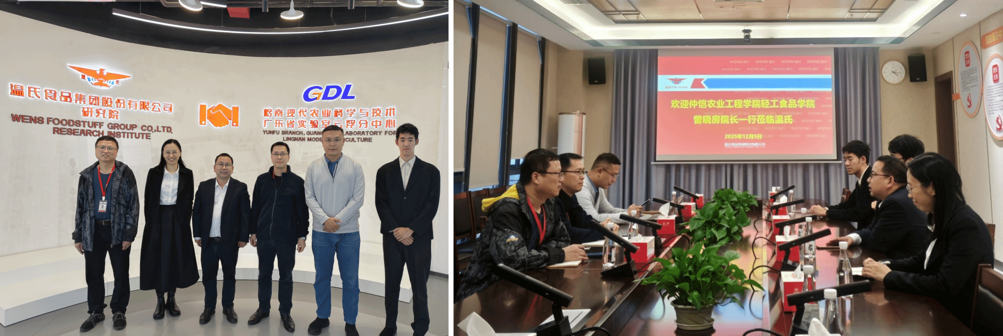 12月5日,公司一行走访温氏集团研究院,实地考察其在食品研发、质量安全、智能制造等领域的创新成果,详细了解企业人才需求与技术攻坚方向。双方围绕“食品加工关键技术突破”“产学研协同育人机制构建”“‘双师型’教师队伍建设”“实习实训基地共建”“毕业生高质量就业”等议题展开务实研讨,在多项合作领域达成共识。温氏集团研究院相关负责人表示,集团高度重视与高校的产学研合作,期待与公司在技术攻关、成果转化、人才培养等方面开展更深层次、更广泛的合作,共同培养适应行业发展的创新型、应用型高素质人才,实现校企互利共赢、共同发展。