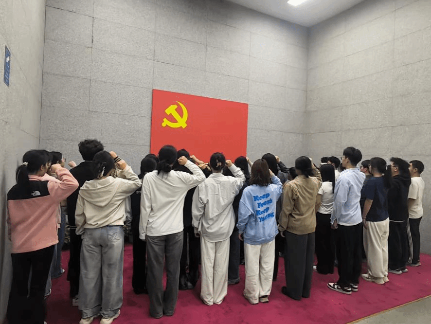 在纪念馆内庄严的历史氛围中,生物工程专业员工党支部书记唐义梅带领全体党员,面向鲜红的党旗,重温入党誓词。铿锵有力的誓言在纪念馆内回荡,表达着青年党员继承革命传统、坚定理想信念、肩负时代使命的赤诚之心。