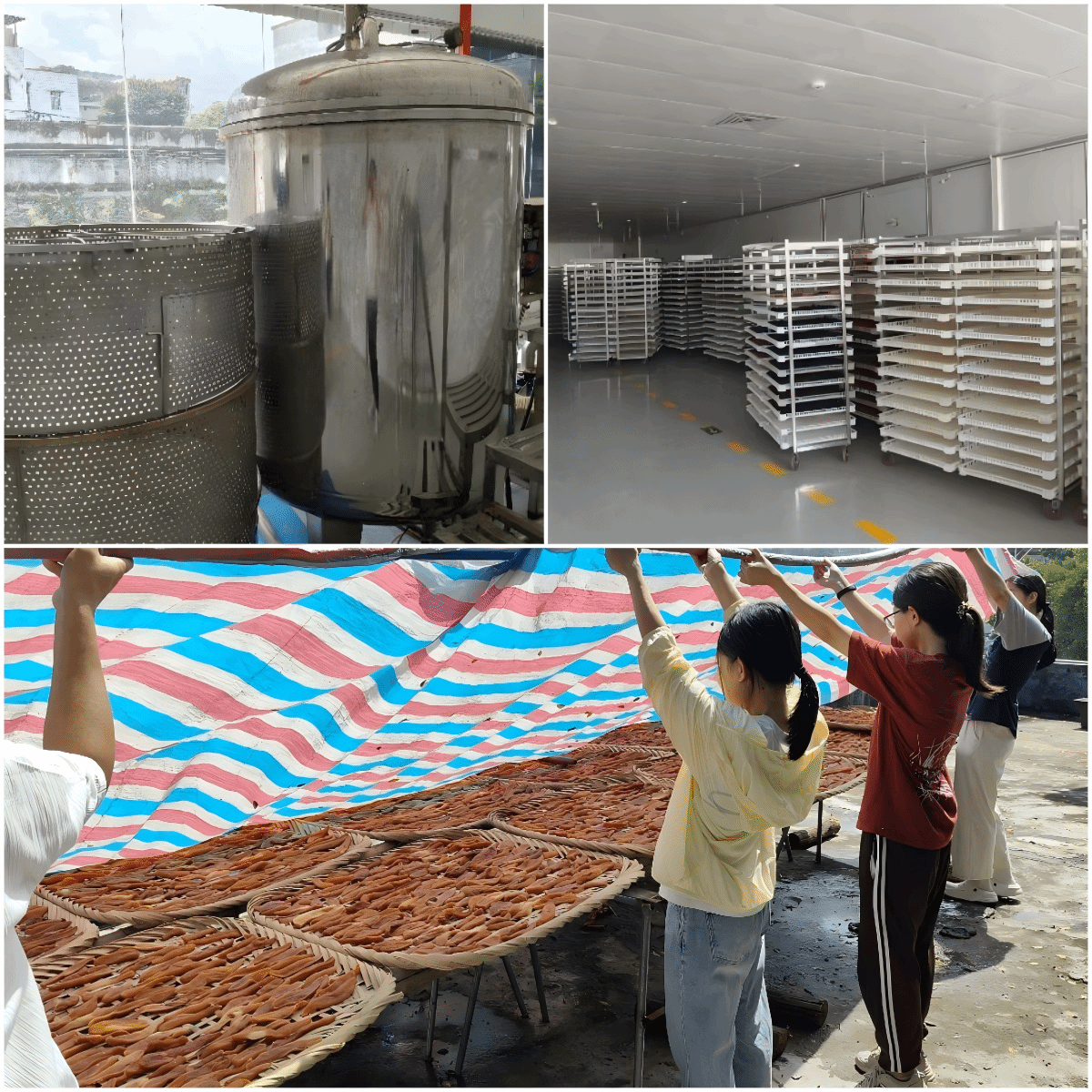 在红薯销售直播间,基地负责人给突击队详细介绍了红薯干工厂化全流程,红薯干采用“三蒸三晒”传统晾晒方法,从搬运竹匾到铺放薯干,呈现古法工艺。此外,结合现代品控体系,通过直播展示原料及成品、生产卫生监管、成品微生物检验全流程,为红薯干产业塑造“可追溯、高品质”品牌形象,让传统工艺与现代风味并行。
