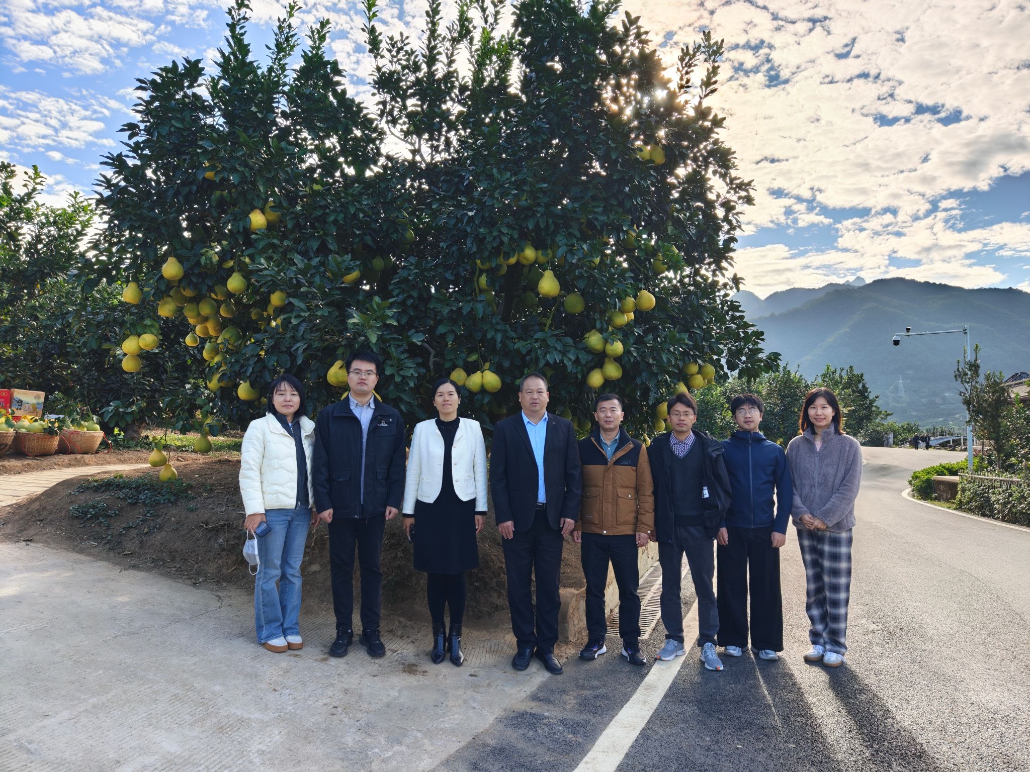 活动首日,公司党委一行走进梅州市雁洋镇南福金柚种植基地开展调研。作为粤东地区特色农业示范点,该基地近年来积极推广生态种植技术,持续推动产业提质增效,已成为区域农业高质量发展的典范。调研过程中,刘胜洪书记与种植户深入交流,详细了解金柚的种植规模、病虫害防治及电商销售等情况;董浩博士从专业角度对金柚标准化生产流程提出优化建议;费永涛博士与李光辉博士则围绕金柚食品加工技术,与企业代表展开探讨。随后举行的座谈会上,公司与雁洋镇有关领导就进一步深化产学研合作进行了充分沟通。