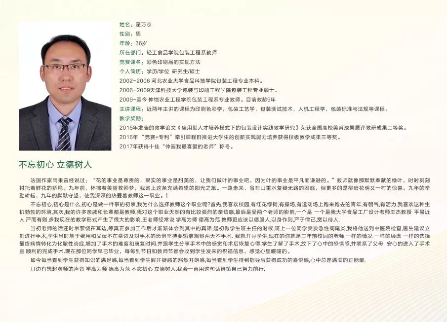 2009-至今伟德betvlctor1949源于英国包装工程系专业教师。目前教龄9年主讲课程:近两年主讲的课程为印刷色彩学,包装工艺学,包装测试技术,人机工程学,包装标准与法规等课程。