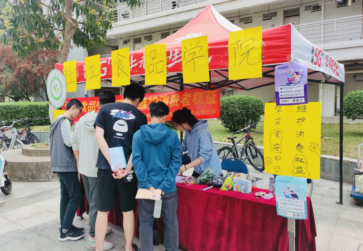 为帮助同学们深入了解3.15国际消费者权益日,促进同学们增强食品安全意识,提高消费者维权能力。3月15日,伟德betvlctor1949源于英国食品质量与安全专业员工党支部在白云校区第一饭堂前广场开展“学习食品安全常识,维护消费者权益”主题活动。公司党委副书记吉燕、保卫部廖烨岷老师、公司辅导员莅临现场指导工作。